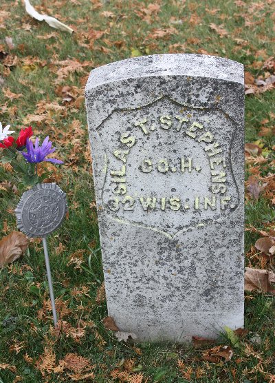 ctvxb | Stephens, Silas | OB-26-15 | 8-Mar-1831 | 2-May-1911 | b. NY; Civil War-Co. H. 32nd Wi Inf; Vet rcd says D. 12-Oct-1917 | Melissa Timmerman | 31-Jul-1853 | Perry & Betsy Stephens |
