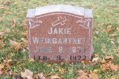 ctnb | Weingartner, Jakie (Jacob) | OB-13-12 | 9-Jun-1874 | 9-Feb-1923 | d. rcd 10-292 | Single | John & Augusta Weingartner | |