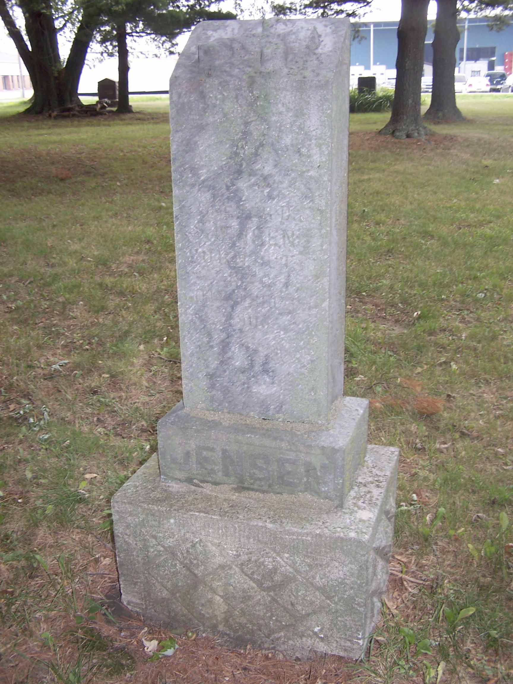tfx | Jensen, Hannah Amelia | 22-Mar-1869 | 29-Dec-1884 | very old stone, broken with upper half buried next to lower half. Cannot read dates; Sister of Huldah Jensen | . | ||