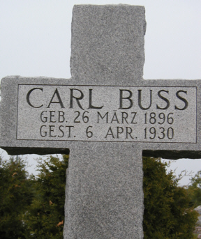 tfyo | Buss, Carl (Charles Frederich William) | Mar 26 1896 | Apr 6 1930 | d. Milwaukee; WWI Vet | Single | Albert & Anna Buss | |