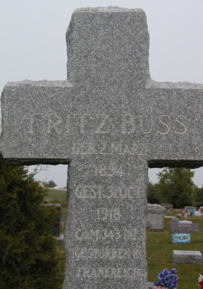c | Buss, Fritz (Fredrich Albert) | Mar 2 1894 | Oct 31 1918 | Gest. Frankrieth (Vet-died in France) | Albert & Anna Buss | ||