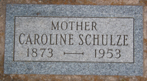 cno | Schultze, Caroline "Mother" | Jun 7 1873 | May 30 1953 | D. rcd 25-238; Obit says Schulze | August H. Schultze | John & ? Ditter | |
