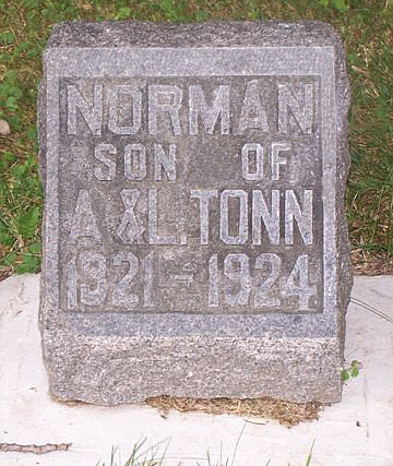 ftn | Tonn, Norman Paul | Sep 23 1921 | Aug 27 1924 | d. rcd 11-127 | Arthur & Lena (Pribbernow) Tonn | ||
