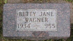 cn | Wagner, Betty Jane | Nov 13 1934 | Jul 18 1955 | d. rcd 26-293 | Single | Albert & Julia (Macool) Wagner | |