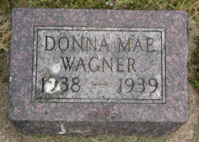 cn | Wagner, Donna Mae | May 24 1938 | Jan 5 1939 | d. rcd 17-286 | Albert & Julia (Macool) Wagner | ||