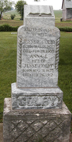 to | Colby, Jesse E. | 13-Aug-1870 | 28-Feb-1903 | Anna E. Limprecht | 4-Jul-1898 | William & Eliza Clarissa (Eddy) Colby | |
