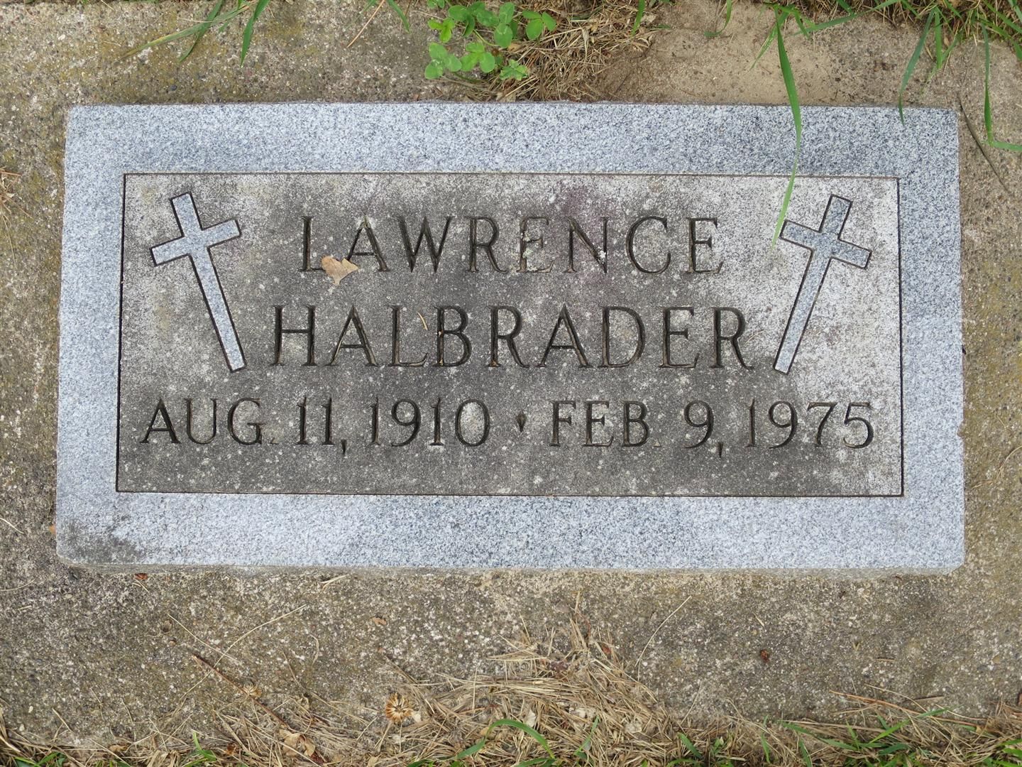txo | Halbrader, Lawrence | 11 Aug 1910 | 9 Feb 1975 | Winifred Oswald | 20-Aug-1952 | George & Lulu Mae (Schwamb) Halbrader | |