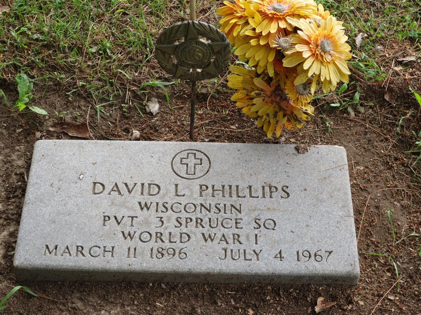 t | Phillips, David L. | 11 Mar 1896 | 4 Jul 1967 | WWI-WI Pvt 3 Spruce Sq | Alice E. | Lewis & Josephine (Noble) Phillips | |