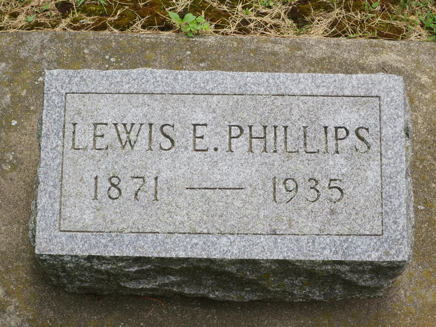 txo | Phillips, Lewis E. | 30 Jun 1871 | 11 Jan 1935 | b. Scottville, Ill.; To be buried here later | Josephine Noble | 7 Dec 1892 | Martin & Philena Phillips |