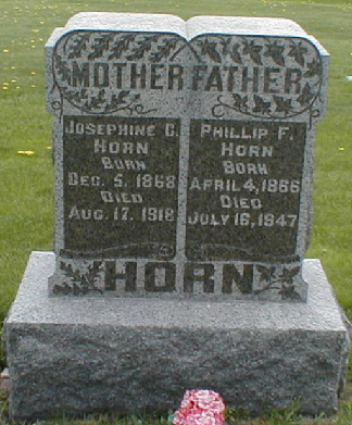 tfo | Horn, Phillip F. | 4-Apr-1866 | 16-Jul-1947 | b. Helenville, Wis. | Josephine C. Nelson | 21-Jul-1891 | Johann Christoph & Anna Margaretha Horn |