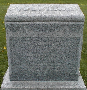 tf | Veefkind, Henry Nicolaas | 3 Oct 1834 | 20 Dec 1909 | Probably first one buried here, as it was his land; b. Leiden, The Netherlands | Mary Reijst | 7 Sep 1859 | Hendrik & Christina Wilhelmina (Born) Veefkind |