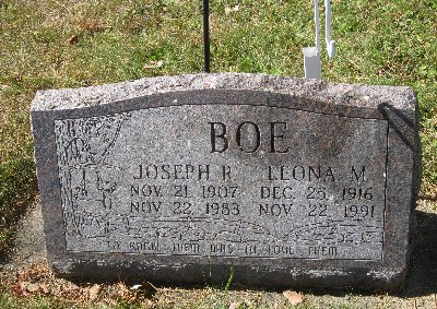 to | Boe, Joseph R. | 21-Nov-1907 | 22-Nov-1983 | Leona Kuester | 24-Oct-1935 | Henry & Randena (Erickson) Boe | |