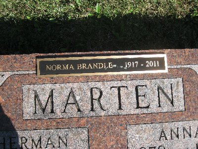t | Brandle, Norma | 1917 | 2011 | Herman & Anna Marten? | |||