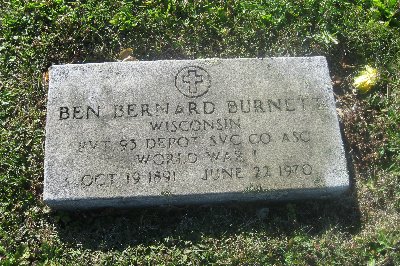 txo | Burnett, Bernard "Ben"; #2 | 19-Oct-1891 | 22-Jun-1970 | WWI-Pvt 93 Depot Serv Co. 9 Sc; Obit just uses Ben for his name | Etta Rue | 3-Jul-1918 | Edward & Mary I. Burnett |