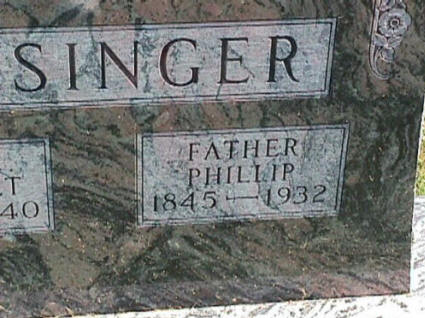 xo | Kissinger, Phillip | 1-Jul-1846 | 17-Jun-1932 | Stone says B. 1845 | Margaret | Nov-1866 | |