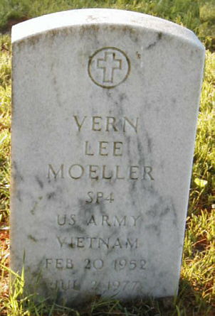 to | Moeller, Vern Lee | 20-Feb | 1952 | 2-Jul | 1977 | Vietnam; SP4 U.S. Army | Single | Earl & Olga Moeller | |