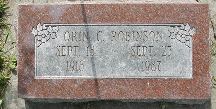ct | Robinson, Orin C. | 4/7/2 | 13-Sep-1918 | 25-Sep-1987 | Violetta | Joseph D. & Euphemia (Clark)Robinson | ||