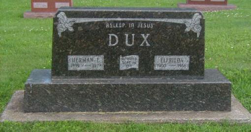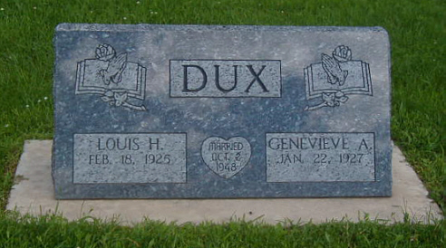 Dux, Genevieve A. "Jennie" | 22 Jan | 1927 | Living | Louis H. Dux | 2-Oct | 1948 | John & Hilda (Meyer) Thoma | ||