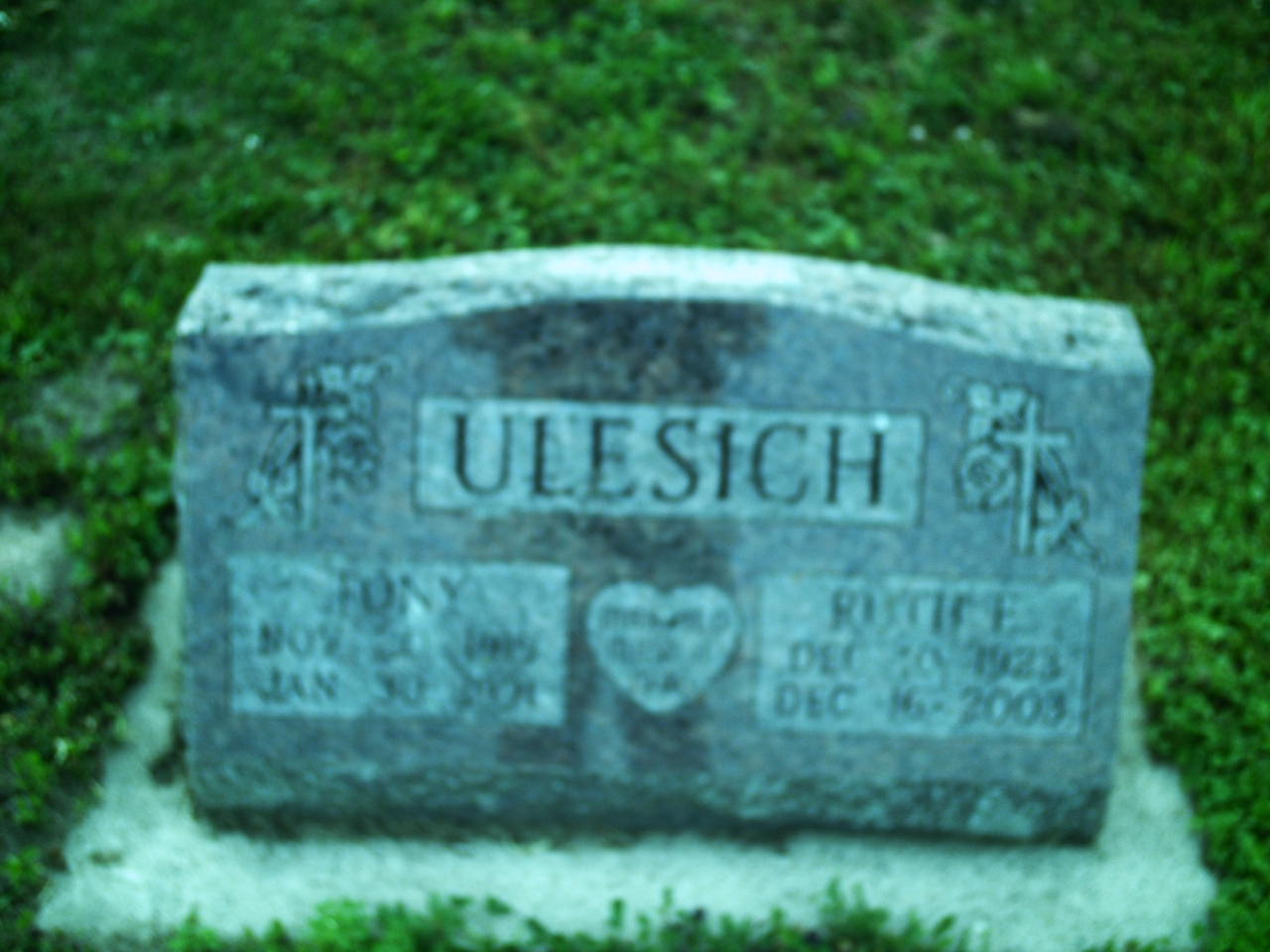 to | Ulesich, Ruth E. | 10 Dec | 1923 | 16 Dec | 2003 | Tony Ulesich | 11 May | 1946 | Oscara & Marie (McCune) Kuenkel | |