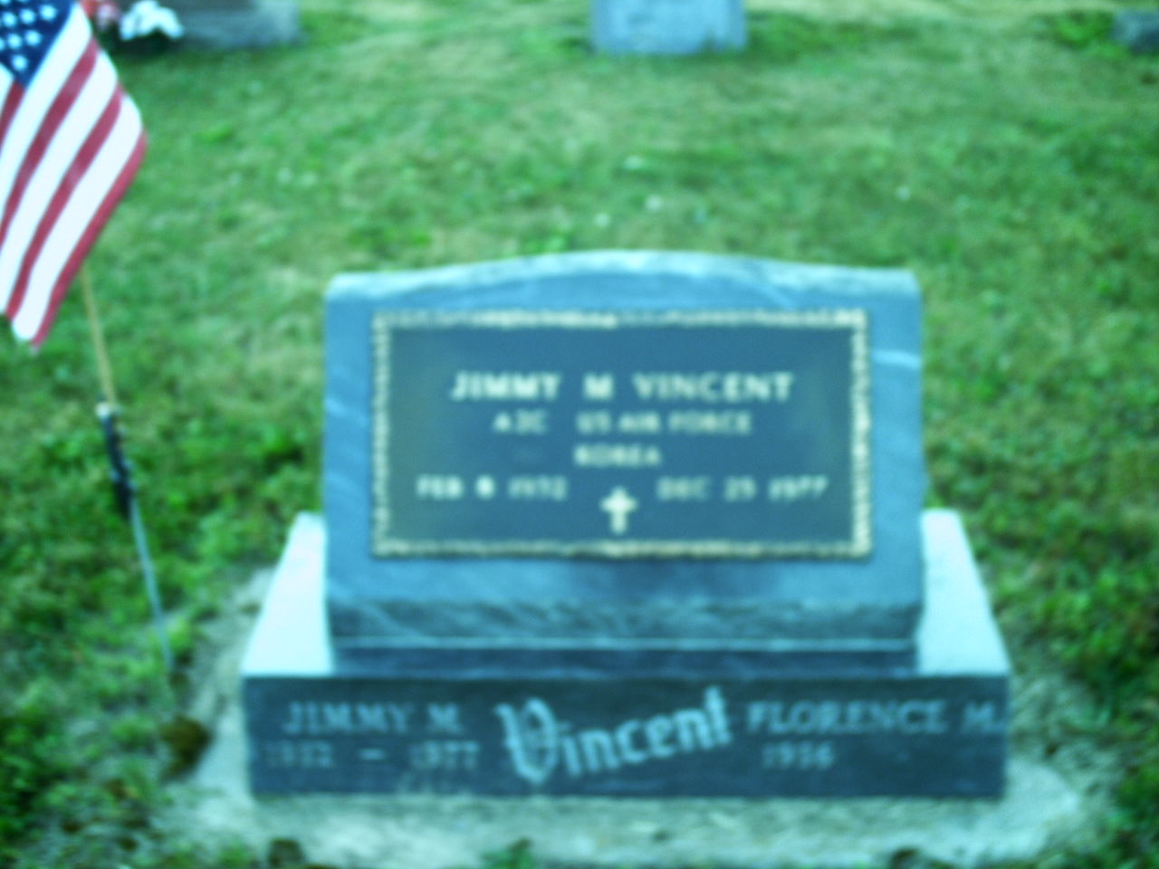 to | Vincent, Jimmie M. | 8 Feb | 1932 | 25 Dec | 1977 | Korea-A2 US Air Force | Florence Mitte | 5-May | 1956 | Jim C. & Merille (Winters) Vincent |