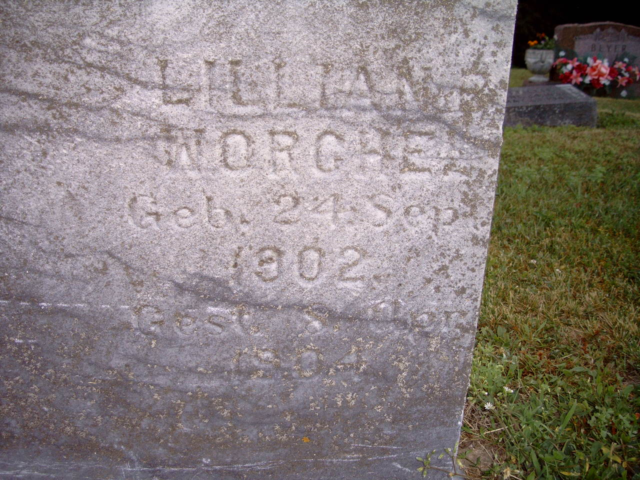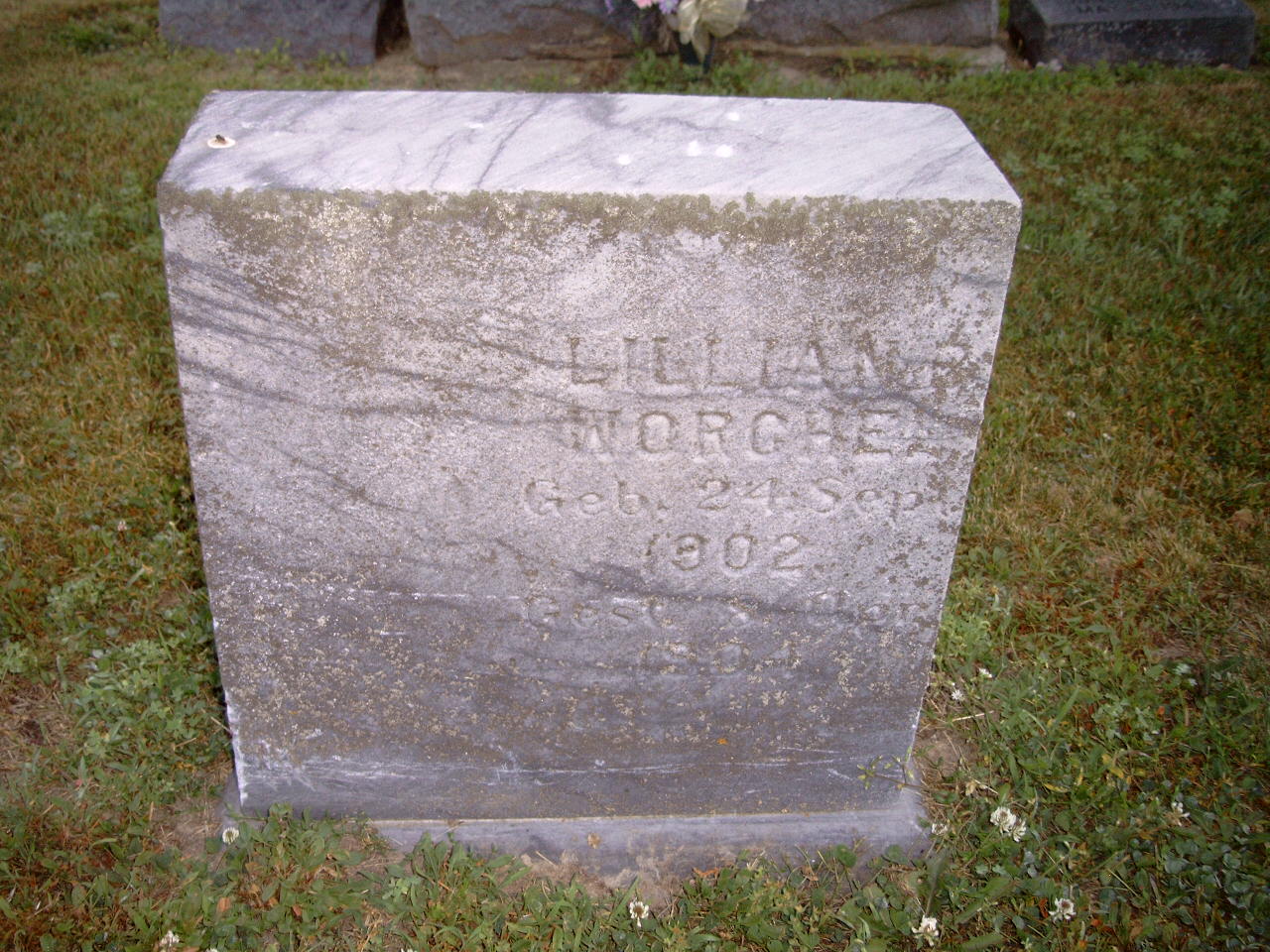 to | Worchel, Lilla H. | 14 Feb | 1899 | 12 Jun | 1967 | Ewald A Worchel | 28 Mar | 1917 | August C.& Alvina F. (Kaufmann) Boyer or Beyer | |