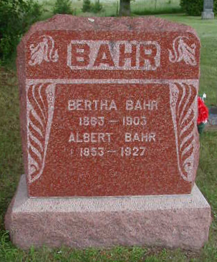 t/n | Bahr, Bertha Theresa | A-12 | 10 | 25 | 1863 | 5 | 21 | 1903 | Albert Bahr | 11 | 11 | 1881 | Gottlieb Kluchmann/Ernestine Schanz | |