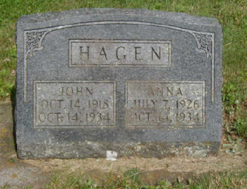 to | Hagen, Anna | A-22 | 7 | 7 | 1926 | 10 | 14 | 1934 | Gus & Barbara Hagen | |||||
