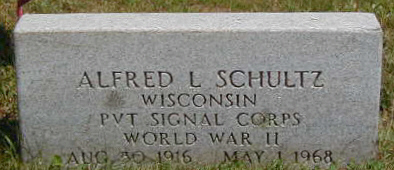 to | Schultz, Alfred L. | A-18 | 8 | 30 | 1916 | 5 | 1 | 1968 | Norma Flaig | 1948 | WWII | |||