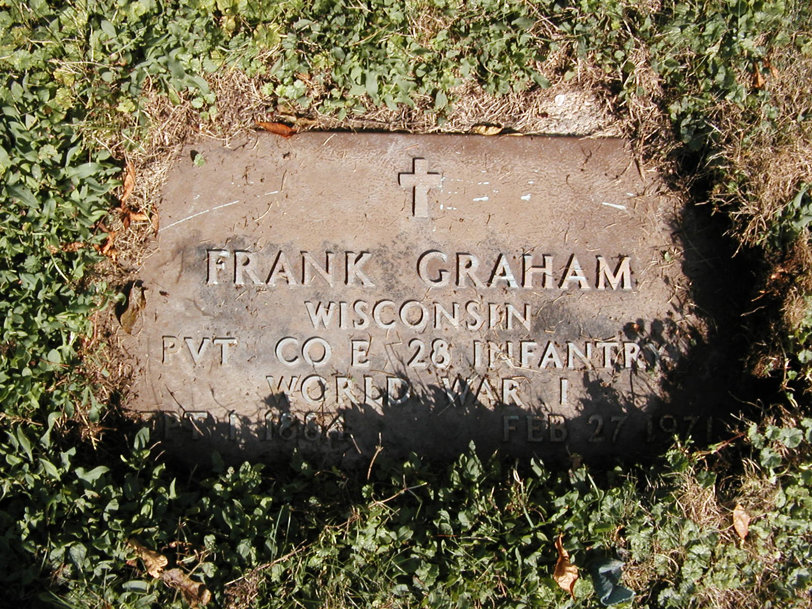 tno | Graham, Frank M., #2 | 1 Sep 1884 | 27 Feb 1971 | WWI-Pvt Co E. 28 Infantry | Dorthea H. Kuntz | 23 Feb 1922 | David & Mildred M. (Alexander) Graham |