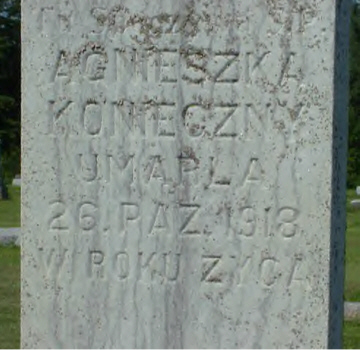 o | Konieczny, Katherina | 18 Oct 1851 | 13 Apr 1928 | Jacob Konieczny | 1872? | |||