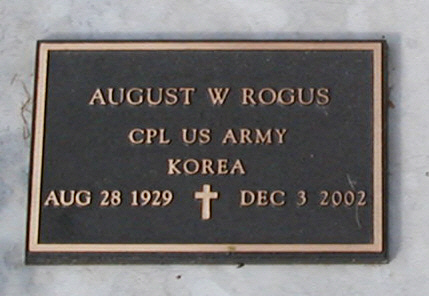 t | Rogus, August Walter "Augie" | E-28-03 | 28 Aug 1929 | 3 Dec 2002 | Korea-Cpl US Army; d. Duluth, Minn. | John M. & Nellie C. (Szczech) Rogus | ||