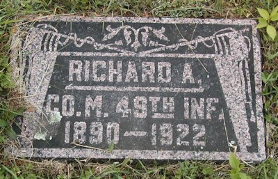 tofx | Brown / Braun, Richard Paul Arthur | 10-03 | 11 Oct 1890 | 9 Feb 1922 | Co. M 49th Inf.; Obit say b. 1889, 1900 Census says b. 1889 | Single | Carl & Amelia (Zachow) Brown | |