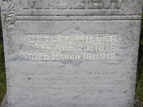 tn | Miller, Detlef, #1 | 09-02 | 23 Aug 1876 | 16 Mar 1912 | John & Marie Caroline (Lorenz) Miller | |||