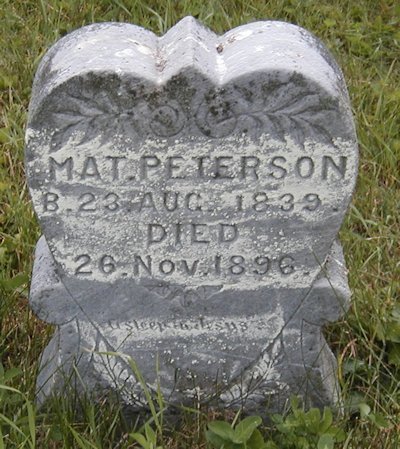 to | Peterson, Matthias | 42-02 | 23 Aug 1839 | 26 Nov 1896 | May be Pederson | |||