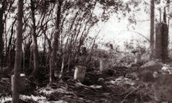 The 83 grave markers, some lying prone in grass and brush, some tilted, some