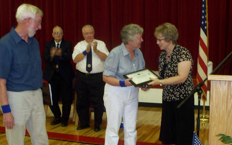 On behalf of the Wisconsin Historical Society, Clark County Register of Deeds Lois Hagedorn presented the 2009 Governor’s Archives Award for Archival Innovation to Stan and Janet Schwarze, County Historical Internet Library webmasters. The presentation was held Saturday, Aug. 8, as part of the Tribute to Civil War Veterans program sponsored by the Greenwood American Legion and held at the Greenwood High School.