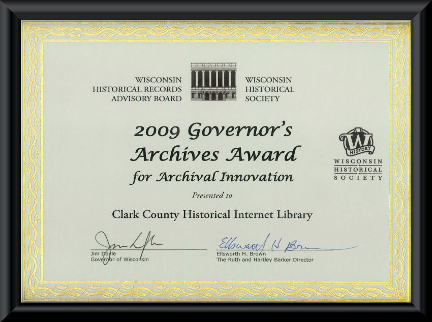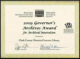 The Wisconsin Historical Society, in their selection process, found the Clark County Historical Internet Library’s “book-shelf presentation of document groups clever and an inviting way to help people find the historical information.”