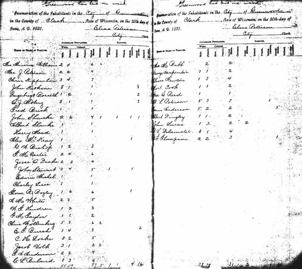 Village of Greenwood, Eaton Township, County of Clark, State of Wisconsin, 1895. (Partial Index take by Elias Peterson, June 20, 1895)