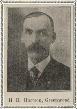 The name of Greenwood was given by Miss Mary Honeywell, now Mrs. Smith Honeywell; and was surveyed and platted in June 1871 when there were five houses and one store in the place. Charles Hogue, Oscar Nutting and Frank Brown did this work.