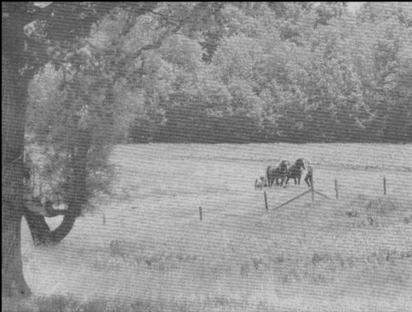 On the Amish farm, work is not avoided, nor sought to be made easier or more convenient. With their horse-drawn machinery and their able hands, they farm in their distinctly Amish way, unchanged for the last one hundred years with no thought to change in the next hundred- or beyond.