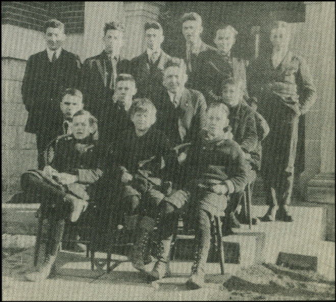 This is a picture of the Neillsville Boy Scout troop taken around 1929. Front row: William Hill, John Flynn, Harold Lipkie, Bud Lambright, Don Dixon, Bruce Beilfuss, Paul O’Hare, Arne Schwellenbach. 2nd row: Hale Hannah, Arnold Berger, Chet Wagner, Francis Welsh, Kearney Hemp, J. Welton Brooks, Lester Zaeske, Henry Frantz, Back row: Lowell Schoengarth, Robert Schiller, Harold Frantz, Kenneth Olson, Adelbert Eberdardt, C. Zschernitz, Walter Brown, Robert Unger, and Francis Schweinler, Scout Master.