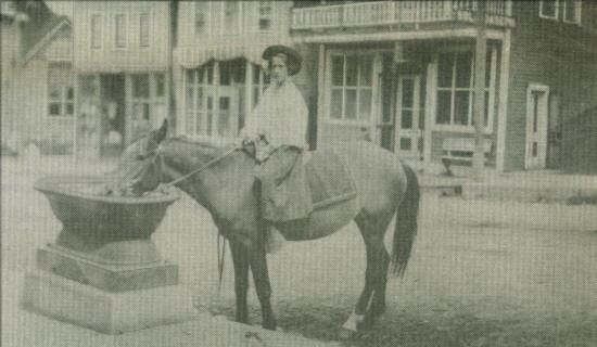 Photo taken on Hewett Street when the watering troughs were available for the horses. The riding horses and carriage horses needs had to be met during those days, too. This young lady was Ruth Whitcomb, who stopped long enough for her horse to quench its thirst. Ruth’s father was the Neillsville depot agent during that era. (Photo courtesy of Clark County Historical Society.)