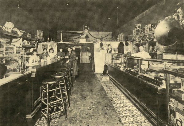 They also served ice cream, popcorn, cordials and sold cigars. The front portion of the area had a display case and counter with stools to serve the ice cream and lunch order customers.