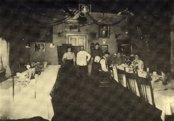 Three full course meals with three different meats were served daily at a cost of only 25˘ per meal. The noon and evening meal also included a dessert, choice of 4 kinds of freshly baked pie, for that price. The tables were set up in the back half.