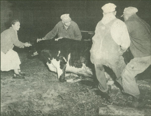 In 1954 a cow named Molly fell into an abandoned well. With the help of friends of Albert and Luella Mohr and wrecker assistance, Molly was hoisted out. |