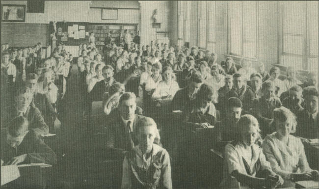 Whenever an announcement had to be made (the days before intercom) to the entire student body, the teachers would tell their classes to meet in the main room or assembly at a set time. So, often that room was referred to as the assembly room as it was usually large enough to have seating room and desks for the entire four classes.