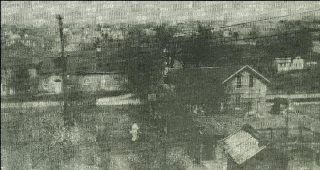 Neillsville Brewery at left, in the background, behind the electric pole and the Schroeder house is right foreground.