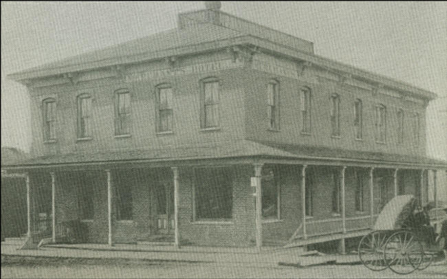 Merchants Hotel – Circa 1890-1900 in horse and buggy days, taken before the west addition, with the old east porch still intact as of this date (Thanks to Clark County Historical Society for photo).