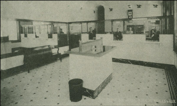 The bank building was remodeled at different times through the years. Only half of the first floor space was needed at the beginning of its business. In later years after the Clover Farm Stores closed, the entire first floor was remodeled to accommodate the growing needs of banking.