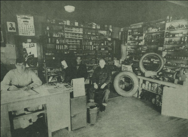 An inside view of the Stelloh Garage and Implement Shop office, corner of West 5th and Grand Ave., in the 20’s. Fred Stelloh is seated at the desk. At his left, an unidentified customer, Fred’s brother, Conrad, who worked in the business; and Fred’s father-in-law, August Wegner. Back in that time, implement shops were one of the good places for the men to gather for some “men’s talk” when they came to town, once a week.